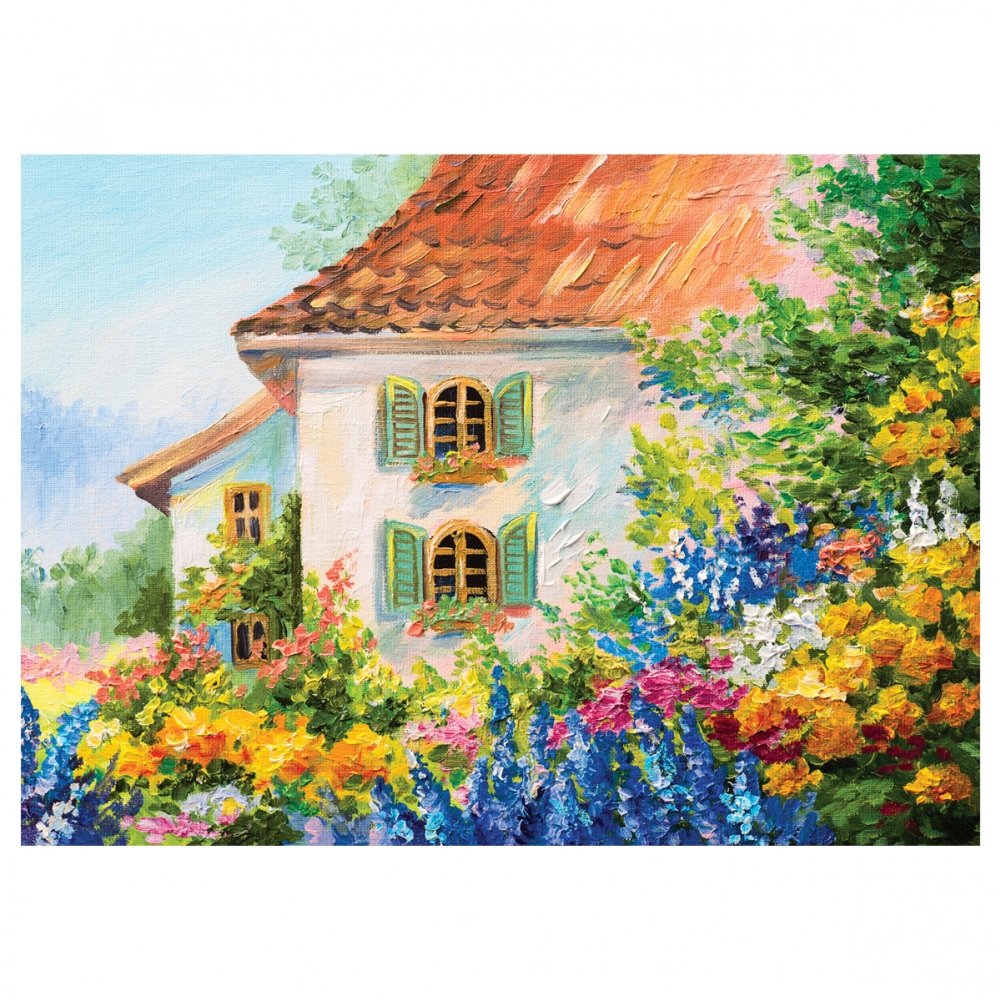 Пазл «Дом в цветочном саду» из 1000 элементов станет отличным способом весело провести время. Картинка имеет горизонтальную ориентацию, в собранном виде размер − 67*48 см.