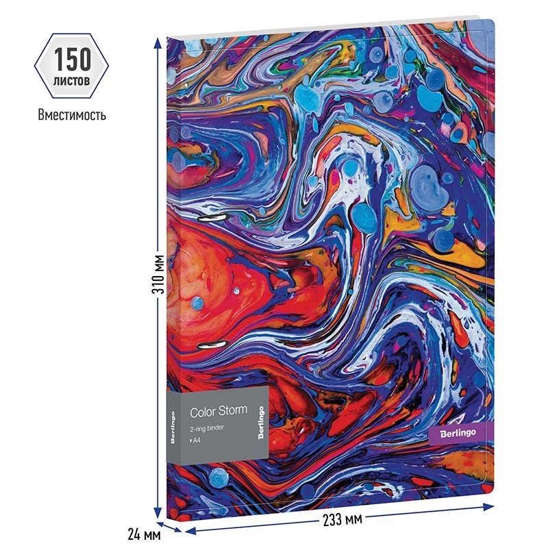 Папка на 2 кольцах Berlingo "Color Storm", 24мм, 600мкм, D-кольца, с внутр. карманом, с рисунком