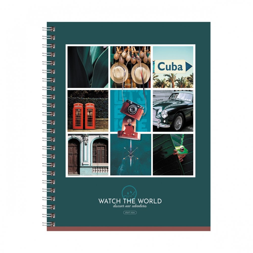 Тетрадь BG серии «Watch the world» в линию. Формат А5. Вид крепления – гребень. Внутренний блок – это 48 листов, офсетная бумага плотностью 65 г/м². Обложка выполнена из мелованного картона с глянцевой ламинацией. Тетради с ярким дизайном отлично подходят для выполнения домашних и контрольных работ.