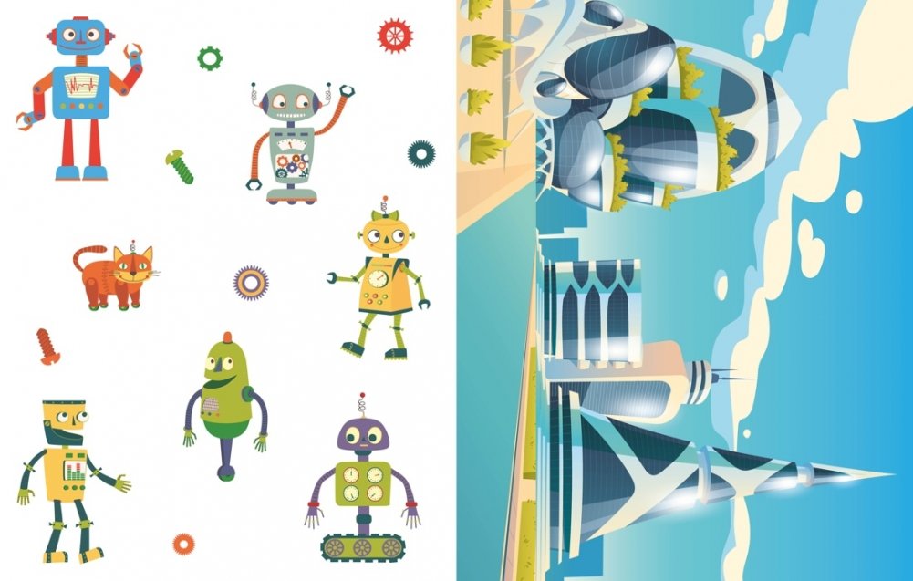 Перед вами уникальная книга для создания бумажных моделей роботов и города будущего.