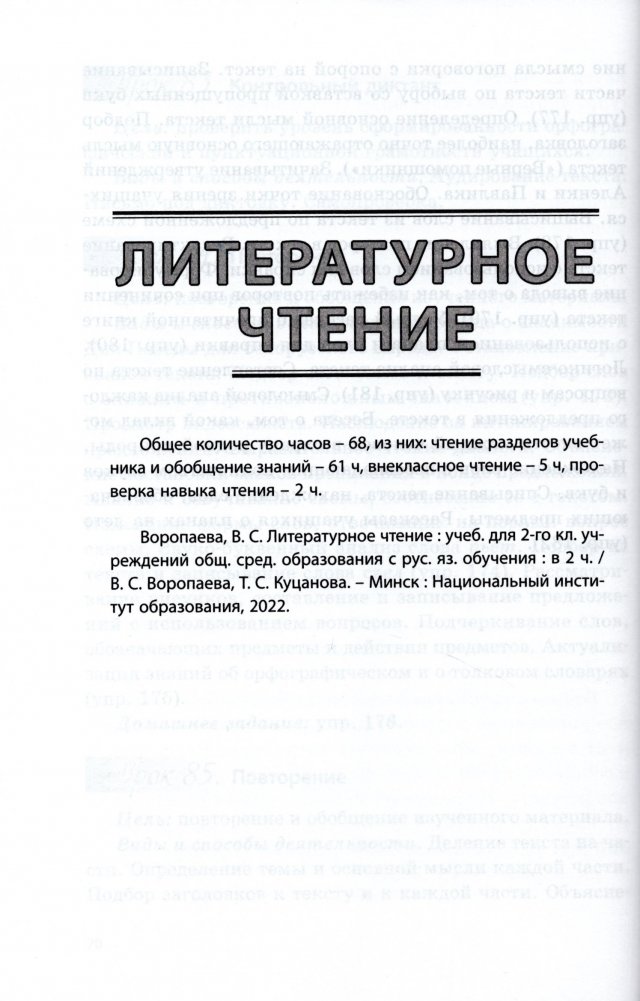 Начальная школа. Русский язык. Литературное чтение. Беларуская мова. Літаратурнае чытанне. 2 класс. Примерное календарно-тематическое планирование. 2025/2026 учебный год