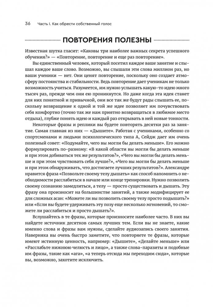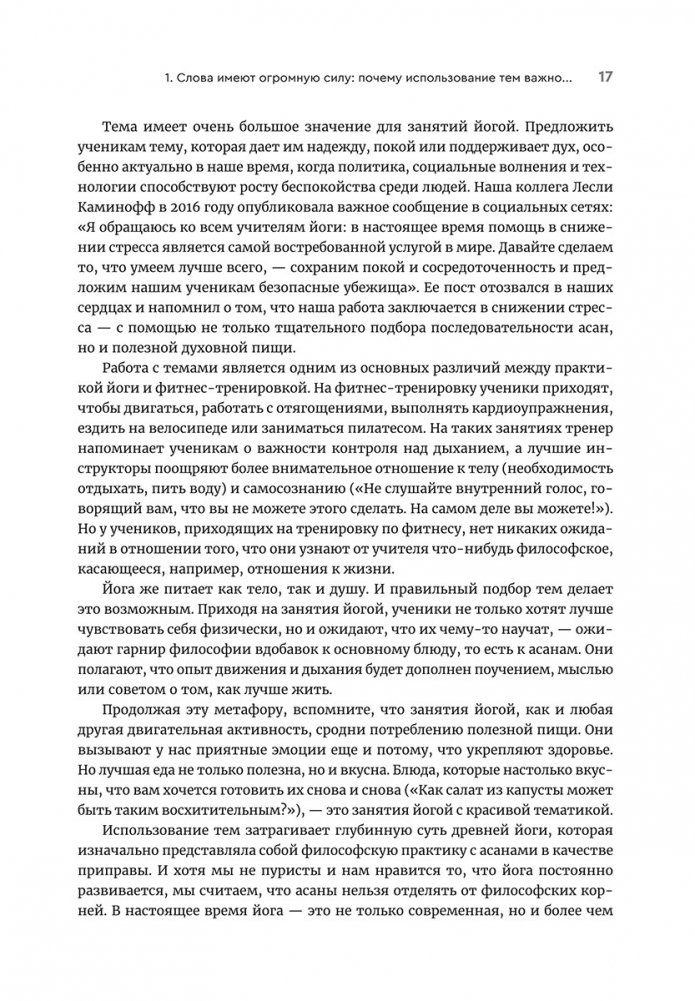 Опытные инструкторы Сейдж Раунтри и Александра Дезиато дают наставникам йоги все инструменты для того, чтобы те могли найти собственный уникальный стиль преподавания и открыть в себе источник внутренней мудрости. Авторы предлагают не только оригинальные идеи для тематических занятий йогой, но и гибкие шаблоны, по которым вы сможете разрабатывать более содержательные и креативные уроки сами.