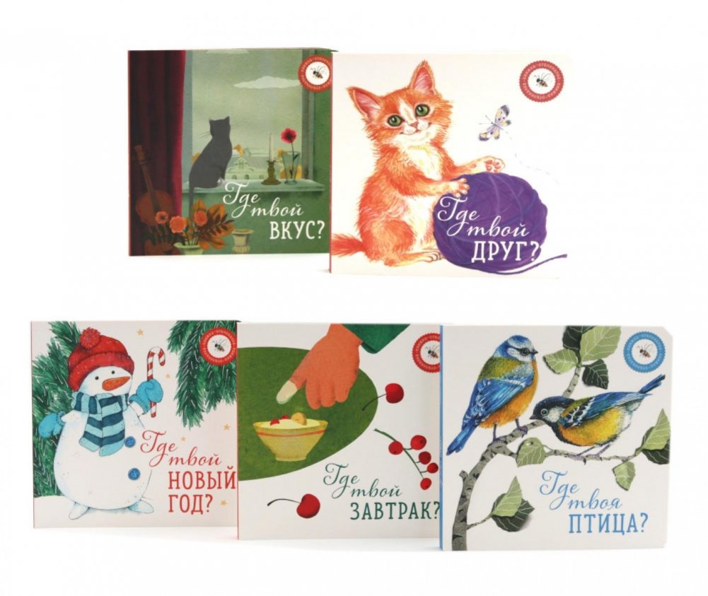 Идея энциклопедии воспитания вкуса воплощена в целой серии книжек-картонок для малышей 0+. Эти тактильные, удобные и познавательно-развлекательные книги объединяют выразительные красивые иллюстрации и тексты с элементами звукописи, помогая ребёнку с первых дней жизни открывать для себя окружающий мир. В комплекте представлены яркие книги-картонки, которые расскажут малышам о волшебном мире природы и повседневных моментах, наполненных радостью и удивительными открытиями.