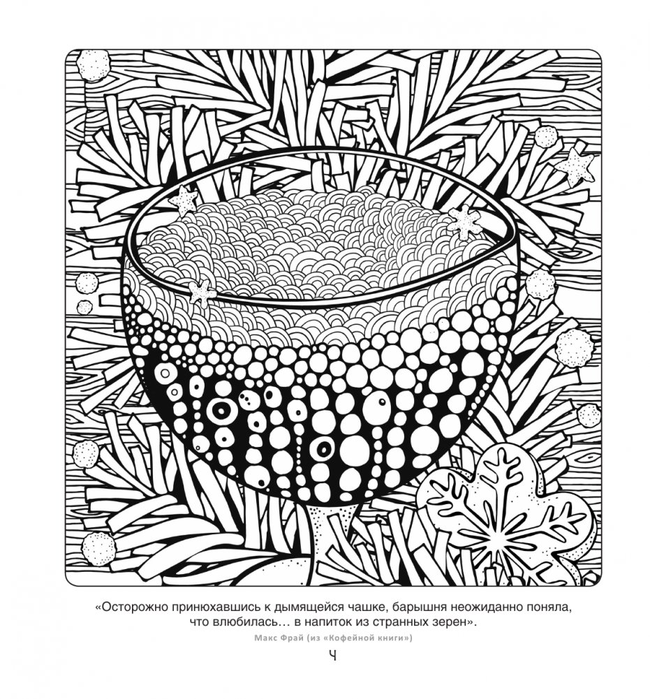 Если вы тоже считаете, что ароматный кофе способен согреть весь мир, и любите устраивать себе перерывы от всего на свете в компании с этим напитком, то эта раскраска вам точно понравится. Самые разные рисунки на кофейную тему — отличный вариант для арт-терапии и творческого свидания с самим собой.