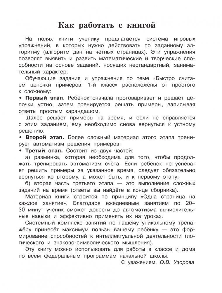 Пособие "Цепочки примеров по математике. Счёт в пределах 20. 1-й класс" создано известным педагогом О. В. Узоровой, автором более 700 учебных пособий для начальной школы. Задания из пособия позволят первокласснику преуспеть в изучении математики. Нестандартные и занимательные упражнения на игровых полях разовьют у юного ученика речевую активность, внимание, память, математическое мышление и умение концентрироваться.