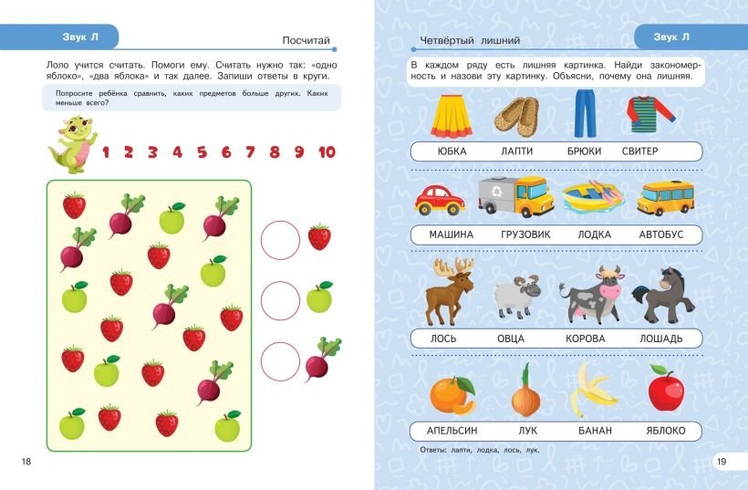 В книге представлена система упражнений для автоматизации в речи ребёнка трудных звуков [л] и [ль]. В норме сонорные звуки [л] и [ль] начинают правильно звучать в речи ребёнка в 5—6 лет. Если этого не происходит, необходима консультация логопеда, чтобы он помог дошкольнику добиться правильного произношения. Только потом можно приступать к самостоятельным занятиям дома. Книга входит в серию пособий "Логопедический тренажёр", предназначенных для педагогов и родителей, чтобы самостоятельно работать над речью дошкольника. Яркие иллюстрации и увлекательные задания помогут превратить монотонную и однообразную работу по закреплению в речи звуков [л] и [ль] в увлекательную игру. Каждое упражнение сопровождается подробными инструкциями для взрослых. Автор методики Лариса Анатольевна Комарова — педагог-логопед с многолетним опытом работы. Занимаясь по её книгам, несколько поколений детей стали обладателями грамотной и красивой речи. Её методику используют педагоги различных логопедических центров. Книга поможет родителям, воспитателям детских садов и логопедам сделать речь ребёнка чёткой, красивой и выразительной.