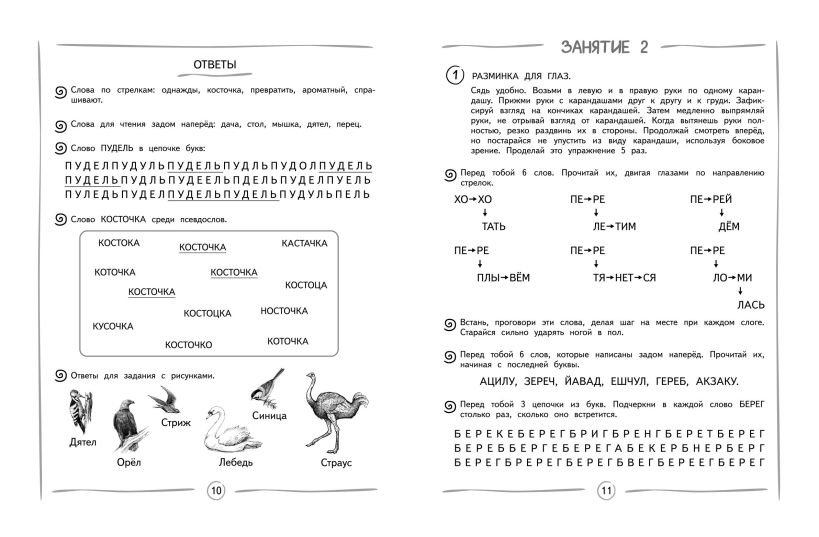 Цель пособия — повысить скорость чтения и степень понимания прочитанного. Работа с нейроупражнениями (разминкой для языка и для глаз, дыхательными упражнениями) способствует активизации работы мозга младшего школьника. Занятия содержат интересные игровые упражнения. К некоторым заданиям имеются ответы, позволяющие учащимся проверить уровень своих знаний.