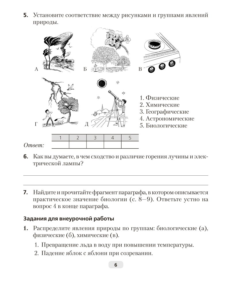 Рабочая тетрадь по биологии для 6 класса