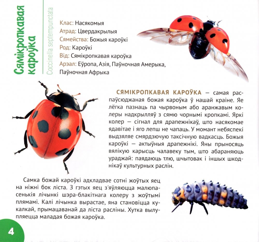 Кніга знаёміць з насякомымі нашай краіны. На старонках вы даведаецеся, якіх свойскіх жывёл разводзяць мурашкі, адкуль прыехаў каларадскі жук, хто з насякомых здольны пераносіць любыя ўмовы жыцця і шмат чаго іншага пра насякомых Беларусі.