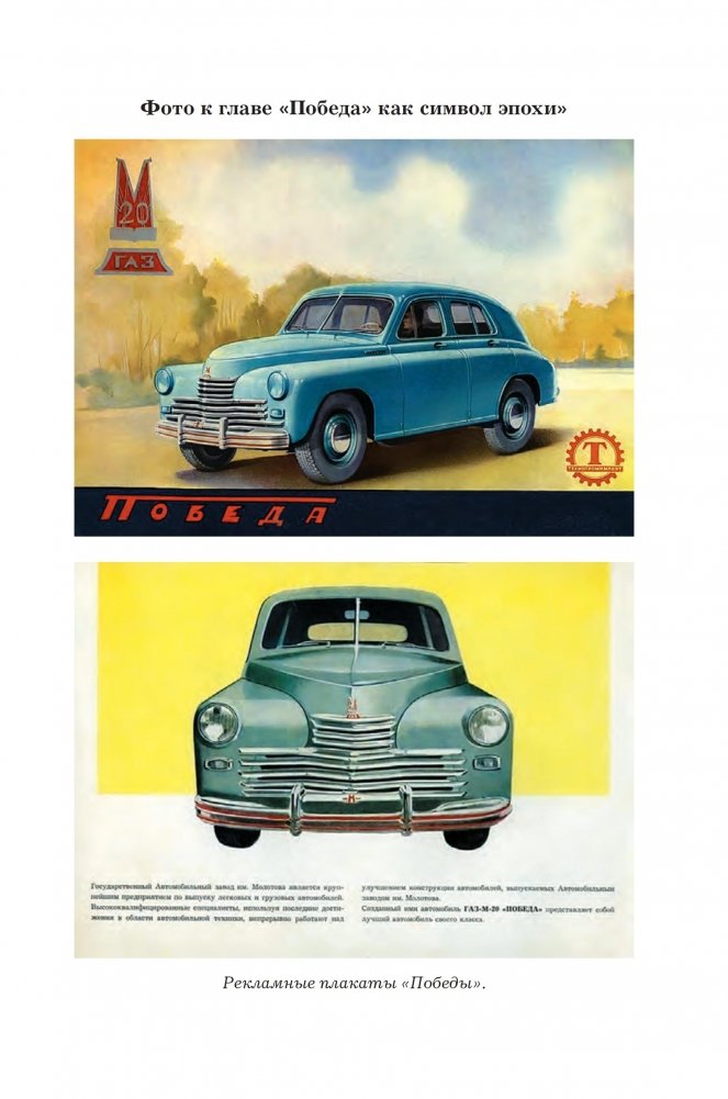 В основе книги история создания и производства легендарного советского легкового автомобиля М-20 «Победа». Его разработка стала настоящим трудовым подвигом коллектива Горьковского автозавода. Это один из первых в мире серийных автомобилей с понтонным (бескрылым) кузовом. Он выпускался в 1946–1958 годах, но этот автомобиль вызывает уважение и водителей, и пассажиров. Красивая, надежная, мгновенно узнаваемая «Победа» была Главным Автомобилем огромной страны — от Бреста до Владивостока. Она стала таким же символом, как день 9 Мая или полет Юрия Гагарина в космос.