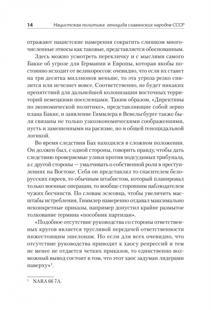 Эта книга — сборник статей известных исследователей нацистских преступлений против славянских народов Советского Союза. Егор Яковлев анализирует следственные дела членов СС, содержащие неизвестные ранее заявления Генриха Гиммлера об инструкциях по систематическому истреблению славян в целях подрыва их демографического превосходства. Алеся Корсак восстанавливает чудовищное массовое убийство в Озаричах на территории Белоруссии, а Ксения Чепикова показывает, что немецкие суды неоднократно констатировали геноцидальность нацистской политики по отношению к русским и полякам. Сборник дает массу нового материала для осмысления геноцидальной политики Третьего рейха, которая была прекращена только в результате побед Красной Армии.