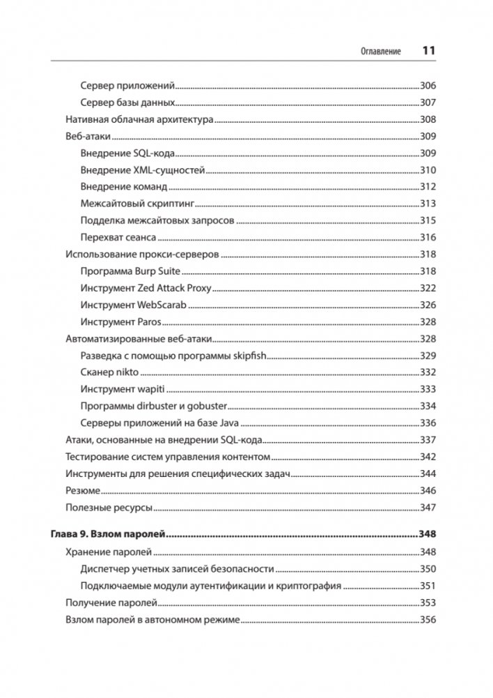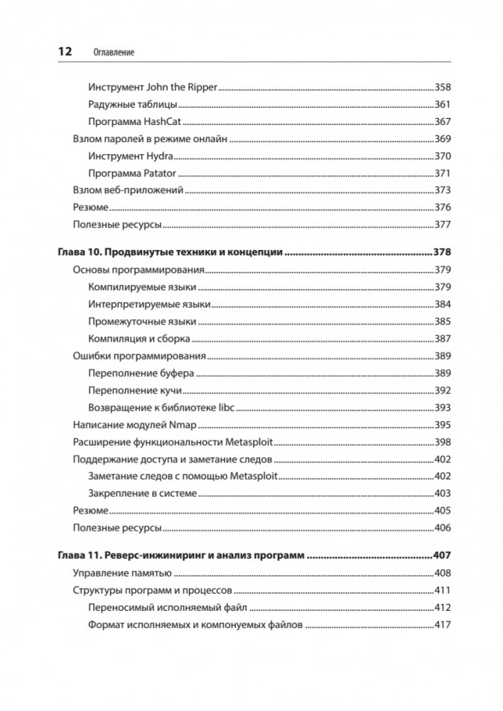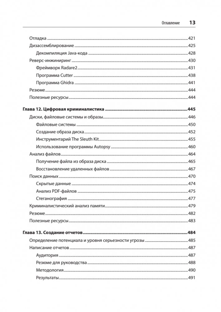 Автор не ограничивается рамками тестирования безопасности и дополнительно рассказывает о криминалистическом анализе, в том числе анализе дисков и памяти, а также базовом анализе вредоносных программ.
