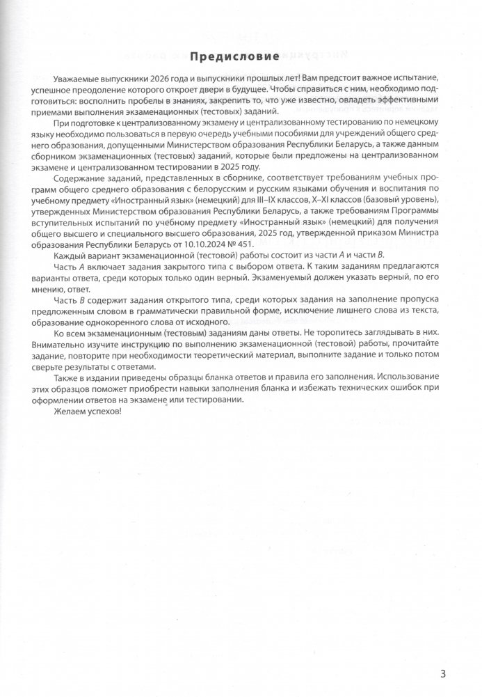 Сборник тестов содержит экзаменационные (тестовые) задания по немецкому языку, предложенные участникам централизованного экзамена и централизованного тестирования в 2025 году. Ко всем заданиям даны ответы.