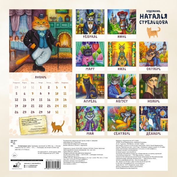 Литературные коты. Календарь настенный на 2026 год