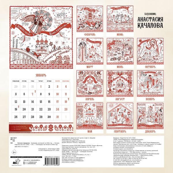 Настенный перекидной календарь на 2026 год с иллюстрациями художницы Анастасии Качаловой станет вашим проводником в мир русской культуры и православия. В календарном блоке отмечены все самые значимые русские праздники. ПРИЯТНЫЙ БОНУС: внутри карманные календарики на 2026-2027 год, которые можно подарить друзьям и близким.