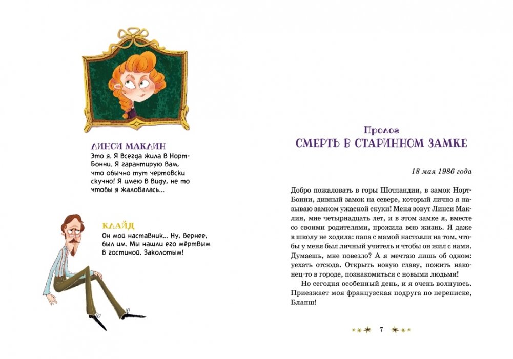 Когда в замке Норт-Бонни происходит таинственное убийство, все подозревают злого духа, и только Линси, юная наследница клана Маклин, понимает, что дело не чисто. Девушка решает провести собственное расследование и доказать, что в происшествии нет ничего мистического. Только с чего начать? Как стать сыщиком, если никогда раньше не разгадывала детективную головоломку? Линси понимает, чтобы добраться до истины придётся углубиться в историю. Участвуй в расследовании вместе с ней.