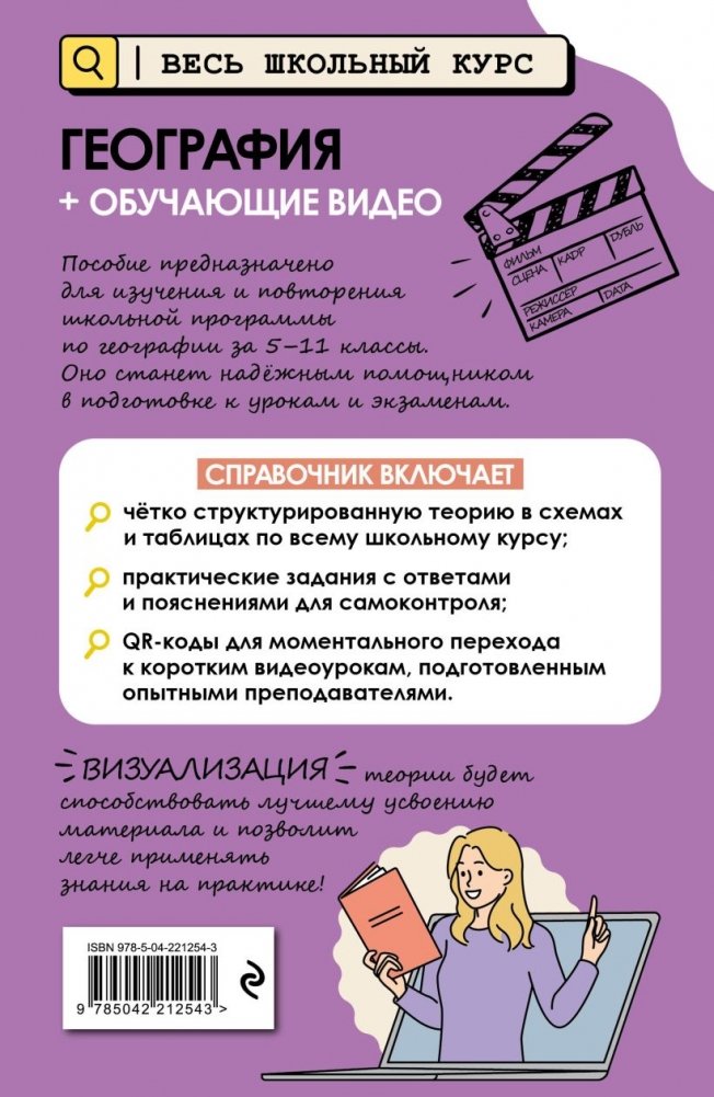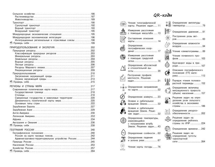 Справочник охватывает все основные темы школьной программы по географии за 5–11 классы. Каждая тема доступно изложена в таблицах, сопровождается примерами и упражнениями для закрепления материала. Анимационные видеоуроки, к которым ведут QR-коды в книге, являются отличительной особенностью издания и предлагают наглядные объяснения сложных тем. Благодаря этому процесс обучения становится более разнообразным и позволяет ученикам изучать материал в удобном для них темпе и формате. Пособие станет надёжным помощником в достижении наиболее высоких результатов при подготовке к урокам и экзаменам. Книга адресована учащимся средних и старших классов, учителям, а также всем заинтересованным в изучении географии.