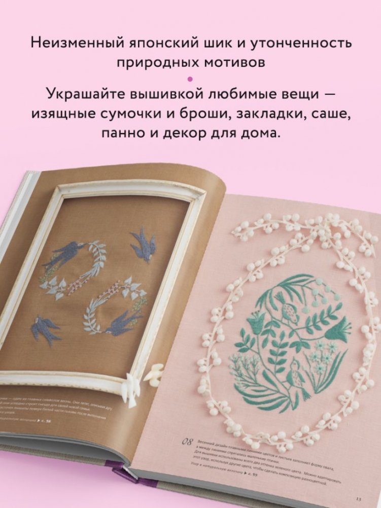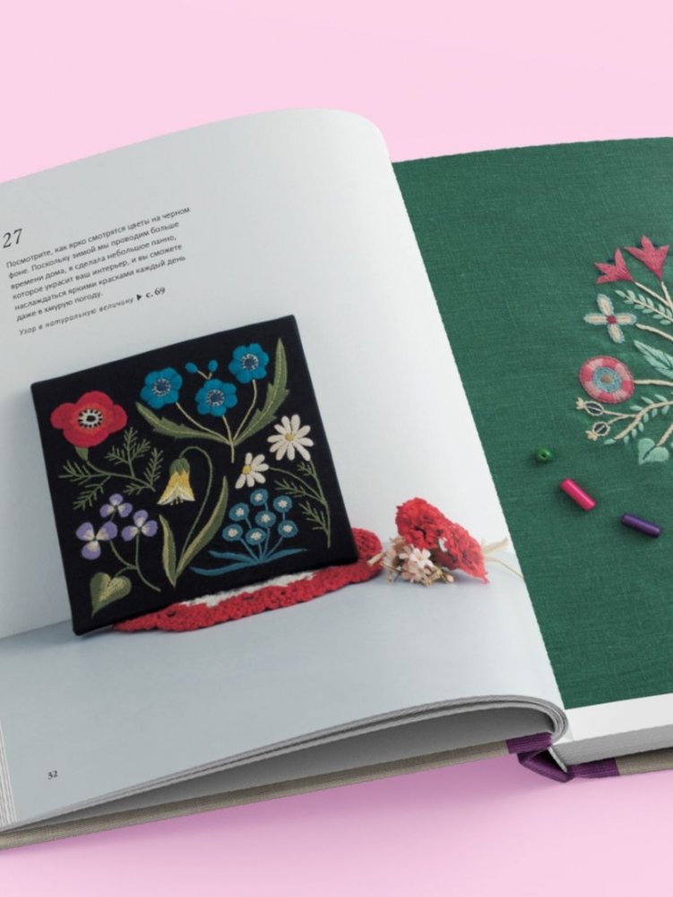 - Советы по подбору материалов и исчерпывающие инструкции по выполнению всех стежков.