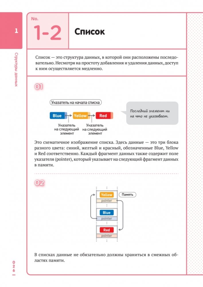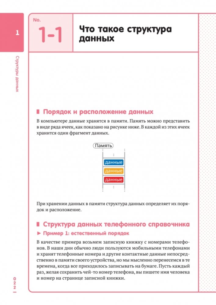 Эта яркая книга делает изучение алгоритмов и структур данных простым и увлекательным. Благодаря полноцветным иллюстрациям, схемам и наглядным примерам сложные концепции становятся понятными даже новичкам. Вы узнаете, что такое эффективность алгоритмов, как работают сортировка, поиск, графы и хеш-таблицы, а также познакомитесь с криптографией, сжатием данных, защитой информации и машинным обучением (алгоритмом кластеризации). Материал изложен так, чтобы вы не просто запомнили алгоритмы, но и научились применять их на практике.