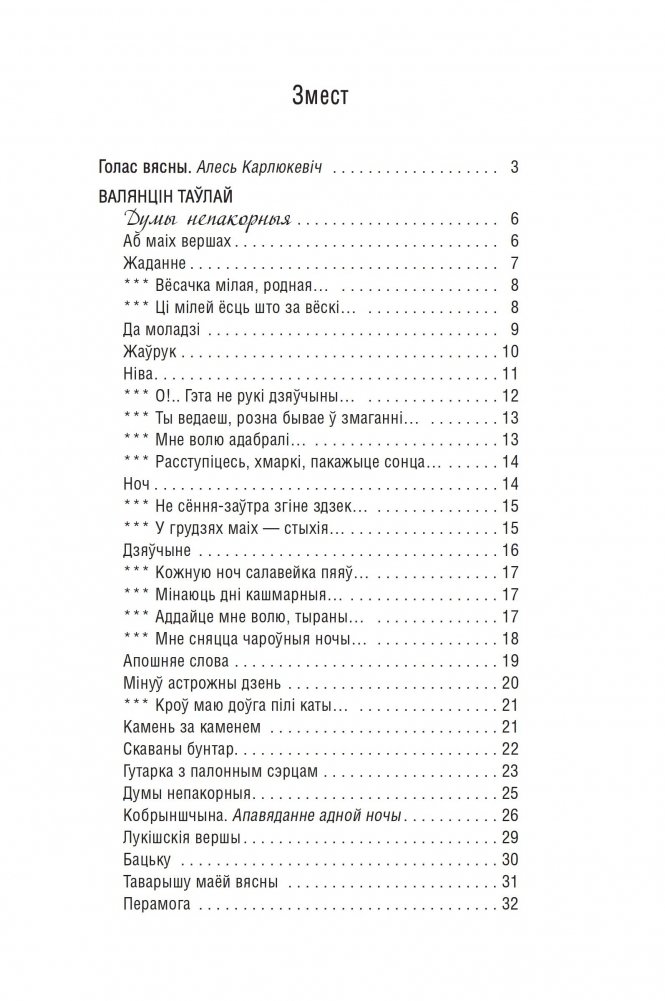 У зборніку змешчаны лепшыя вершы трох вядомых беларускіх паэтаў, якія ўвайшлі ў залаты фонд айчыннай літаратуры, — Валянціна Таўлая, Сяргея Новіка-Пеюна і Міхася Васілька.