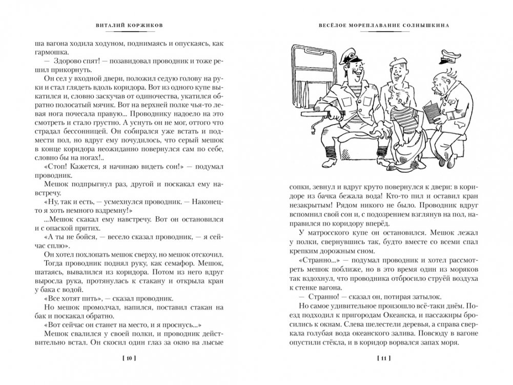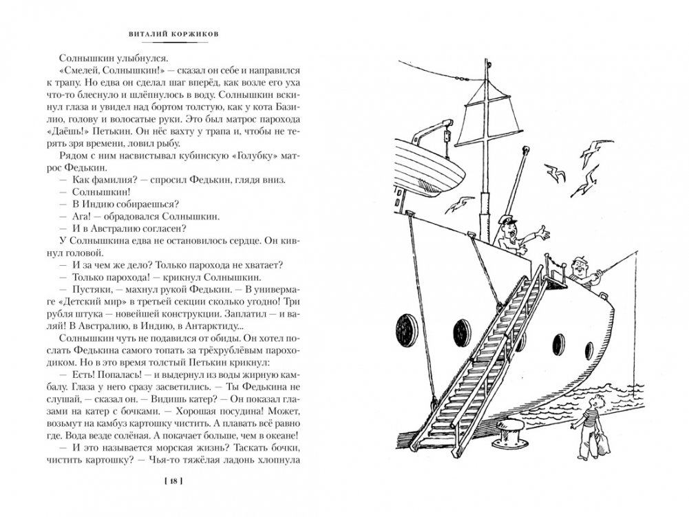 Весёлые повести о приключениях матроса Солнышкина и его друзей, об их необыкновенных плаваниях к берегам Камчатки, Антарктиды и к далёким тропическим островам автор писал более тридцати лет. Главный герой повестей Виталия Коржикова — мальчик из далёкой сибирской деревушки Алексей Солнышкин — всегда мечтал посмотреть мир. Поэтому, когда бабушка отправила его из тайги в ближайший город поступать в училище, мальчик уехал на край земли — в портовый город Океанск. Там оказалось, что в морское училище Солнышкин не годен — мал ещё, надо подрасти! Зато он попал матросом на пароход «Даёшь!». Жаль только, что капитан судна оказался отъявленным разгильдяем. На любой вопрос у него был один ответ: «Плавали — знаем!» С таким командиром немудрено сесть на мель. Однако юному искателю приключений любые трудности по плечу, ведь именно к такой жизни он и стремился — к жизни настоящего морского волка!