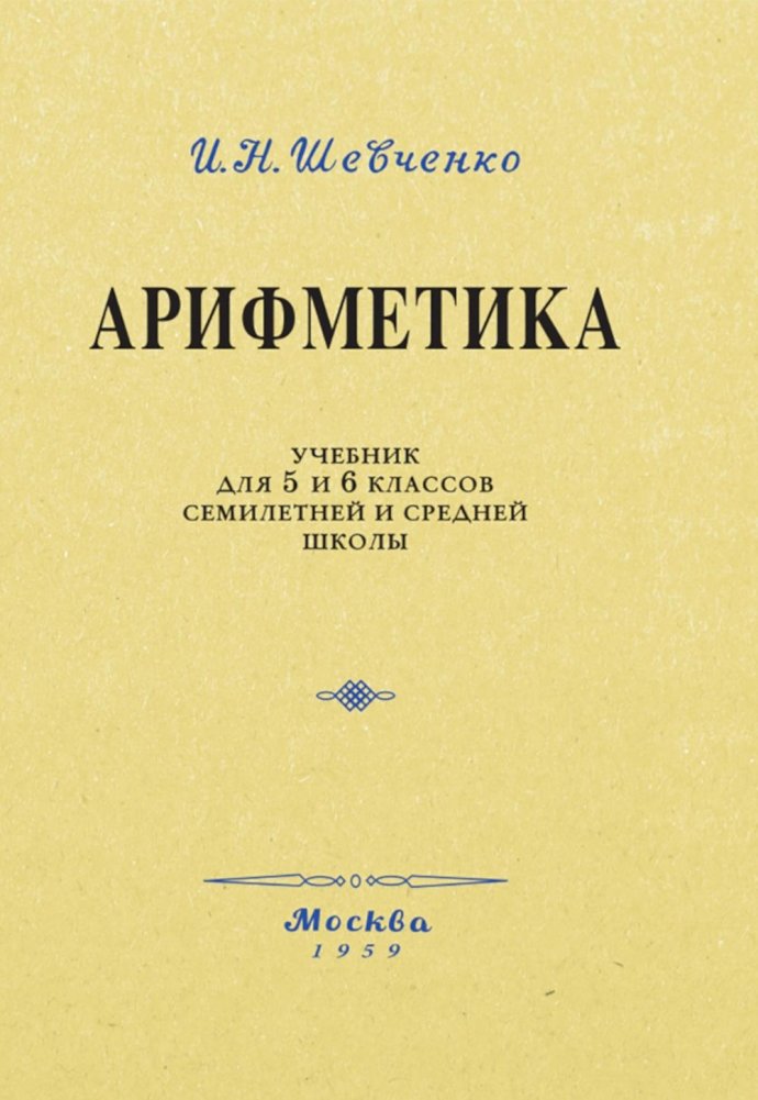 Книга в ваших руках – репринт учебника по арифметике И.Н. Шевченко для учащихся 5–6 классов средней школы (1959 год). Учебник разделён на 4 части, которые дают представление о целых числах, об обыкновенных и десятичных дробях, о пропорциях и пропорциональности величин. В каждой части есть главы и параграфы, объединённые общей тематикой, например: арифметические действия, величины и их измерения, делимость чисел, действия над дробными числами, действия над десятичными дробями, проценты, пропорции, пропорциональные величины.