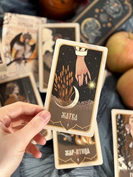 Затем в моей жизни были историческая реконструкция раннего средневековья (эпоха викингов и Древняя Русь), более серьезные исследовательские книги Проппа, Максимова и других и, конечно, огромное желание сделать что-то свое на эту тему, потому что визуально красивых (лично для меня) образов по мотивам славянских сказок и мифологии, кроме созданных мастерами прошлого, просто не было. В итоге все мои любимые и часто используемые в творчестве символы: девоптицы, прекрасные царевичи, волки, драконы и лебеди ― воплотились в этой колоде карт.