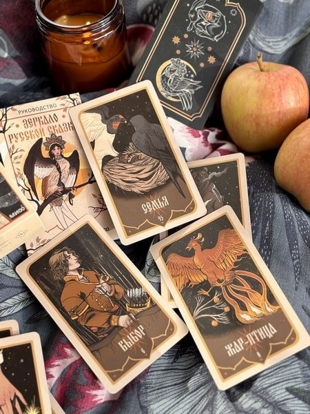 Кроме образов, колода вобрала и мой многолетний опыт в исторической реконструкции, и знания, почерпнутые в книгах по мифологии и архетипам, истории, психологии. Но не стану лукавить, как художник я нарочно изменяла некоторые детали во внешности персонажей, опираясь на собственные представления о прекрасном или желая создать более визуально яркий образ. Карты получились такими, какими я их задумывала и мечтала увидеть на книжных полках ― одновременно простыми и сложными, очень поддерживающими и визуально эстетичными, так что они будут неплохо смотреться как в руках у психолога, так и на фотораскладках в соцсетях. Надеюсь, вы полюбите «Зеркало русской сказки» так же, как и я!