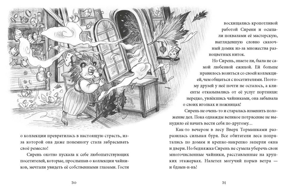 Добро пожаловать в необычный лес Вверх Тормашками: здесь соня Ива подает чай в летающем чайнике, ежиха Сирень хранит в фарфоровых чайниках нитки, а юный бельчонок Липа узнает, что чай не только согревает, но и помогает от недугов. Есть тут и доставка чая светлячками, и карета из чайного ситечка, и даже волшебная скрипка, которая умеет лечить грусть.
