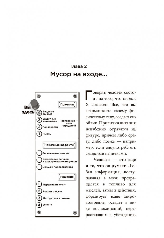 Книга содержит практические упражнения, способствующие переформатированию мышления. Опираясь на свой профессиональный опыт программирования и глубокие познания в области нейронаук, Мо доказывает, что мозг, несмотря на его невероятную сложность, ведет себя в значительной степени предсказуемо и, следовательно, каждый человек может сам управлять своим разумом.