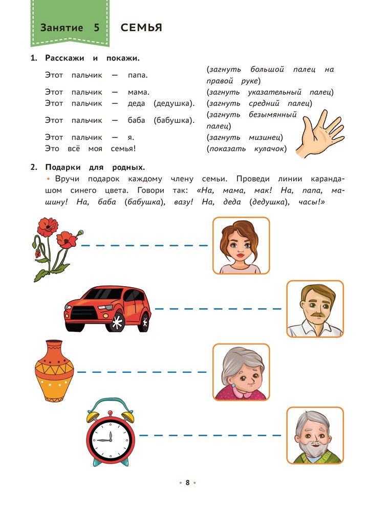 Предложенные в пособии упражнения и игры направлены на уточнение и расширение словаря, развитие навыков словоизменения и словообразования, правильного употребления простых предлогов. Материал, представленный в тетради, поможет сформировать фонетико-фонематическую базу, развить фразовую и связную речь, будет способствовать сенсорному развитию, активизации высших психических функций и познавательной деятельности.