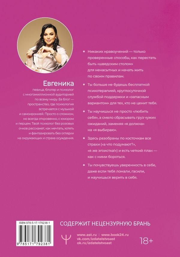 Эта книга — как крик души, застрявшей в образе "хорошей девочки", как разговор с близкой подругой в минуту отчаяния: "Хватит быть подпоркой для всех! Пора стать главной героиней своей жизни".