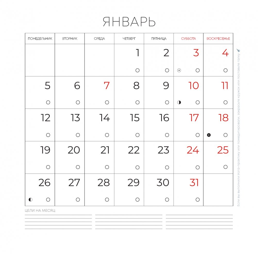 - трекер, чтобы отмечать дни, когда была совершена йога-практика.