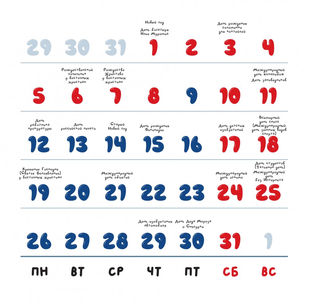 Этот календарь — чудесный подарок близкому человеку или себе любимой! Яркие иллюстрации не только украсят интерьер, но и поднимут настроение в самый хмурый день. А большие окошки с числами вместят любые ваши пометки и не дадут забыть о важной дате или пропустить праздничный день.