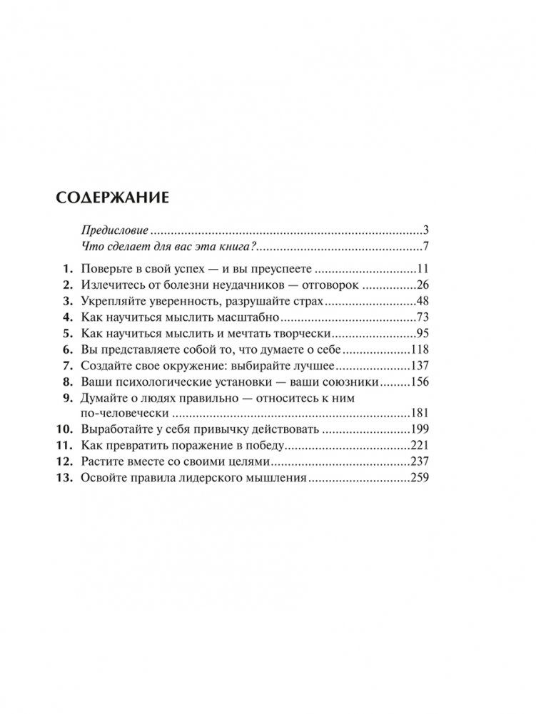 Эта книга уже помогла миллионам людей сделать свою жизнь лучше. Дэвид Шварц, один из самых известных экспертов в области мотивации, научит вас лучше работать, лучше руководить, лучше зарабатывать и — что еще важнее — наконец-то почувствовать себя счастливыми и достичь душевного покоя. Автор дает не абстрактные советы, а практические рекомендации, с помощью которых вы наладите свою карьеру, личные отношения и общественную жизнь. Книга сообщит вам секреты успеха! Узнайте их — и вы достигнете того, о чем всегда мечтали.