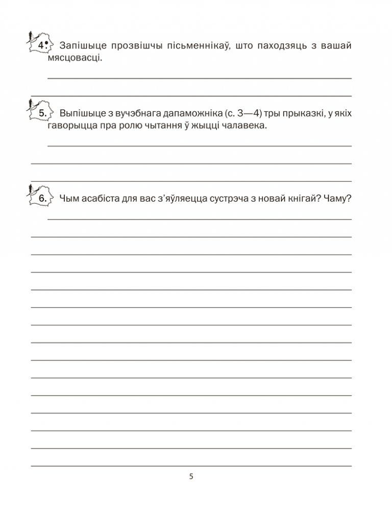 Сшытак падрыхтаваны ў адпаведнасці з праграмай па беларускай літаратуры і дапаўняе вучэбны дапаможнік для 5 класа. Заданні і практыкаванні прапануюцца розных узроўняў складанасці, маюць творчы характар, развіваюць здольнасці вучняў. Сшытак дапаможа замацаваць і праверыць набытыя на ўроку веды.