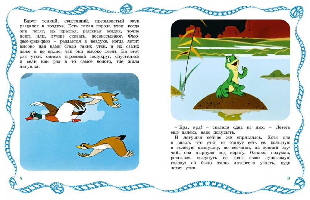 Как и все лягушки, героиня знаменитой сказки Всеволода Гаршина спокойно и счастливо жила в болоте. Она ловила мошек, нежилась под моросящим дождиком и громко квакала со своими подругами, пока однажды не повстречала уток и не решила отправиться с ними в далёкое путешествие на прекрасный тёплый юг…
