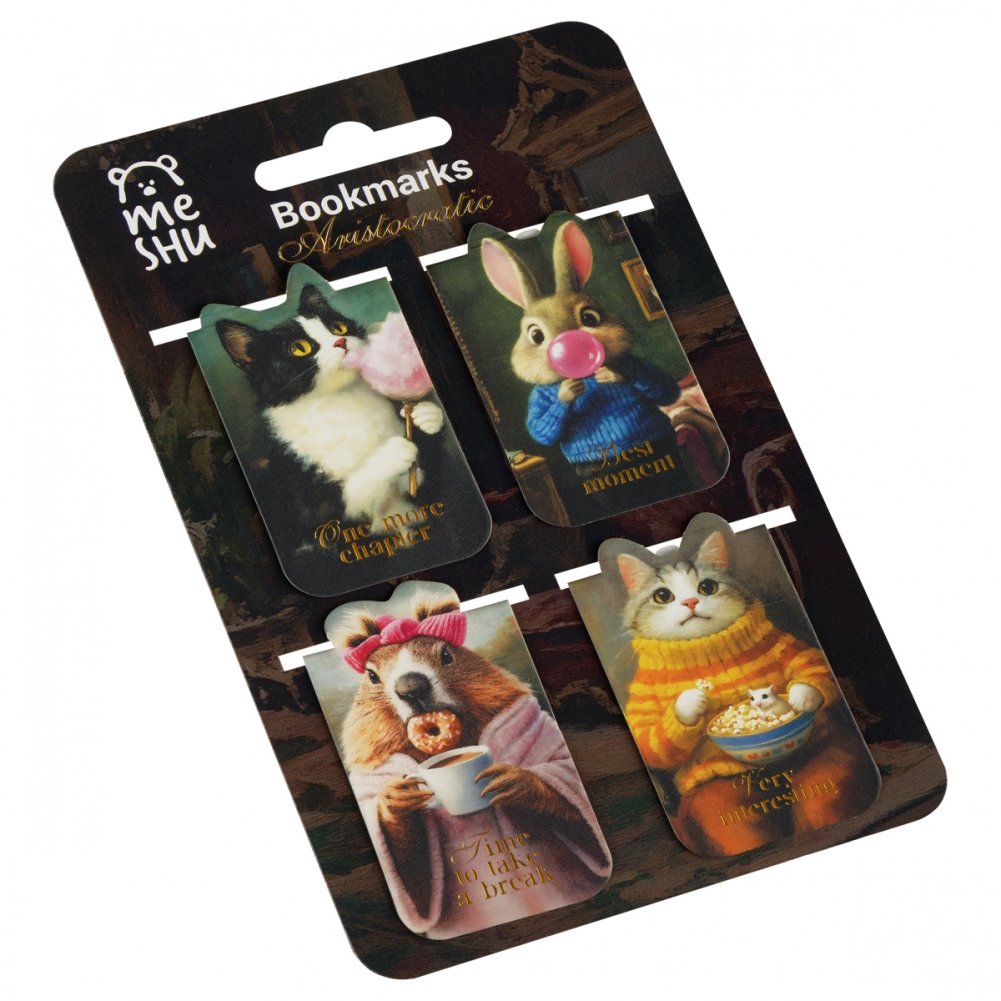 Магнитные закладки MESHU помогут запомнить и быстро найти нужную страницу книги. Благодаря полностью магнитному основанию закладки надёжно фиксируются на страницах и не выпадают, даже если перевернуть книгу. Аксессуары сделаны из полимерных материалов. Набор упакован в пакет с европодвесом. Подложка продолжает общий дизайн набора.