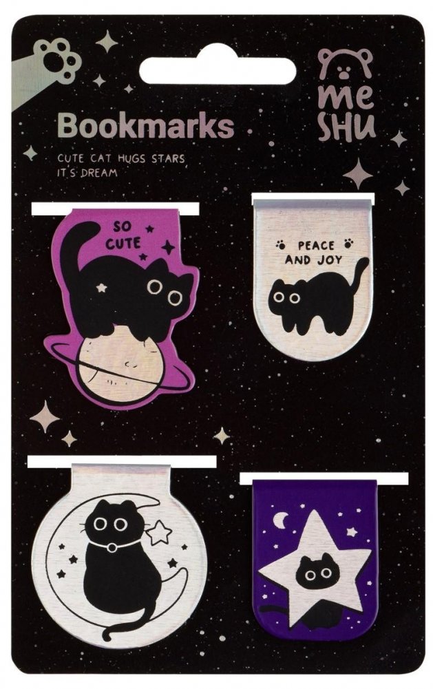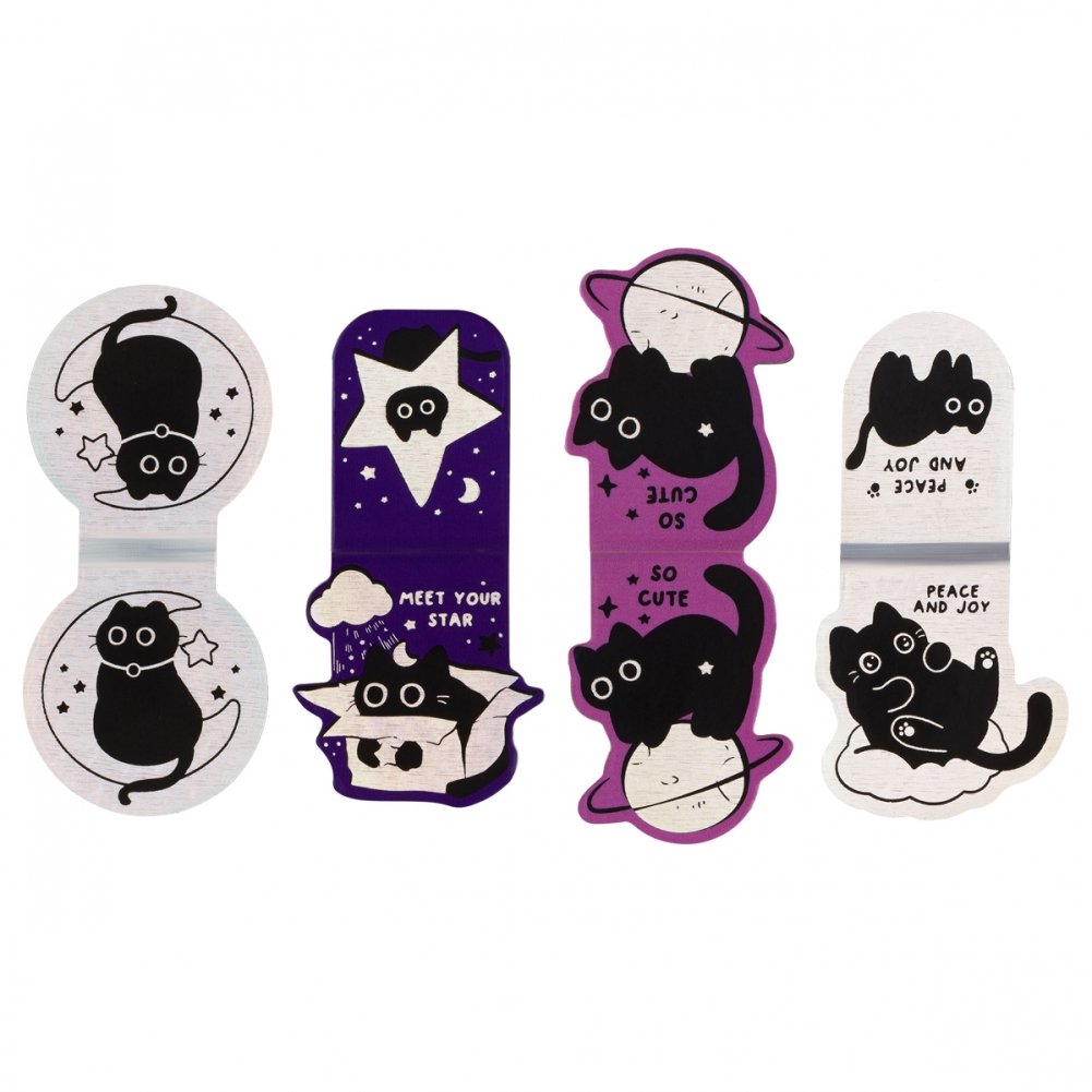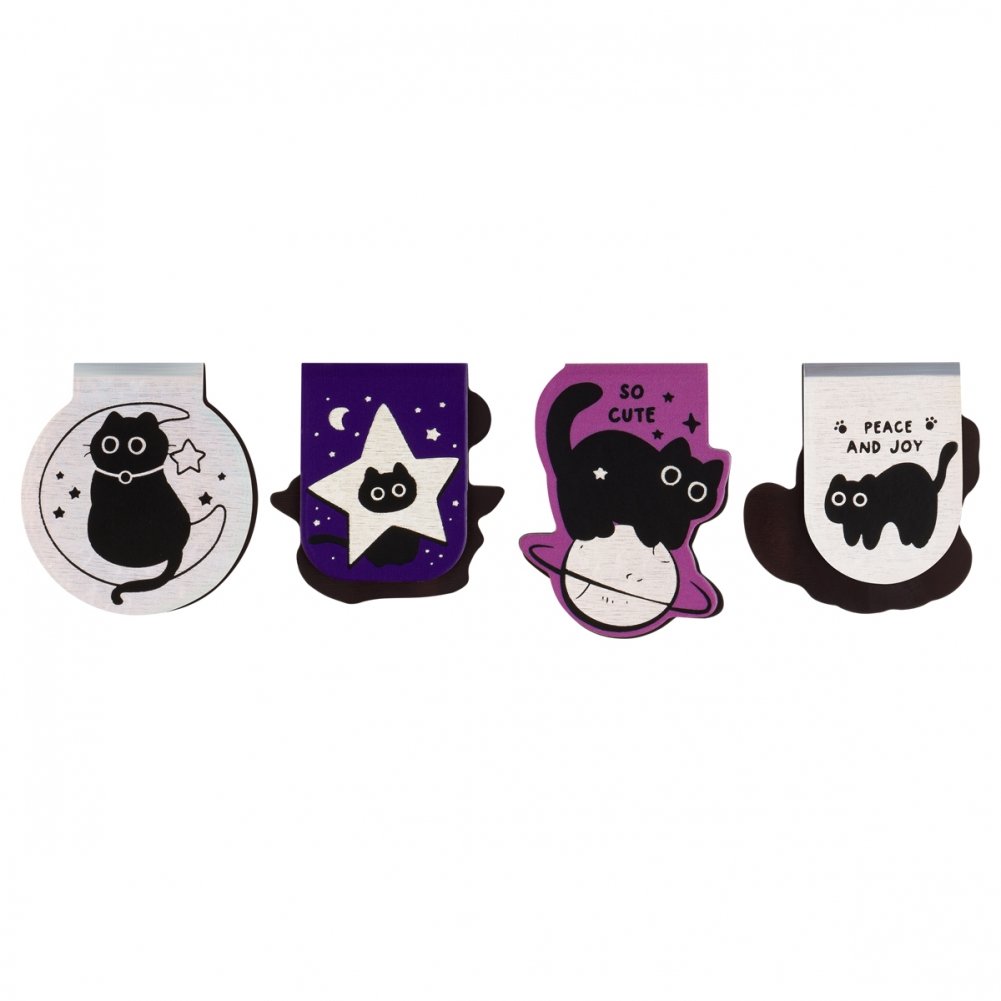 Закладки магнитные для книг, 4шт., MESHU "Meow Space", голографическая фольга