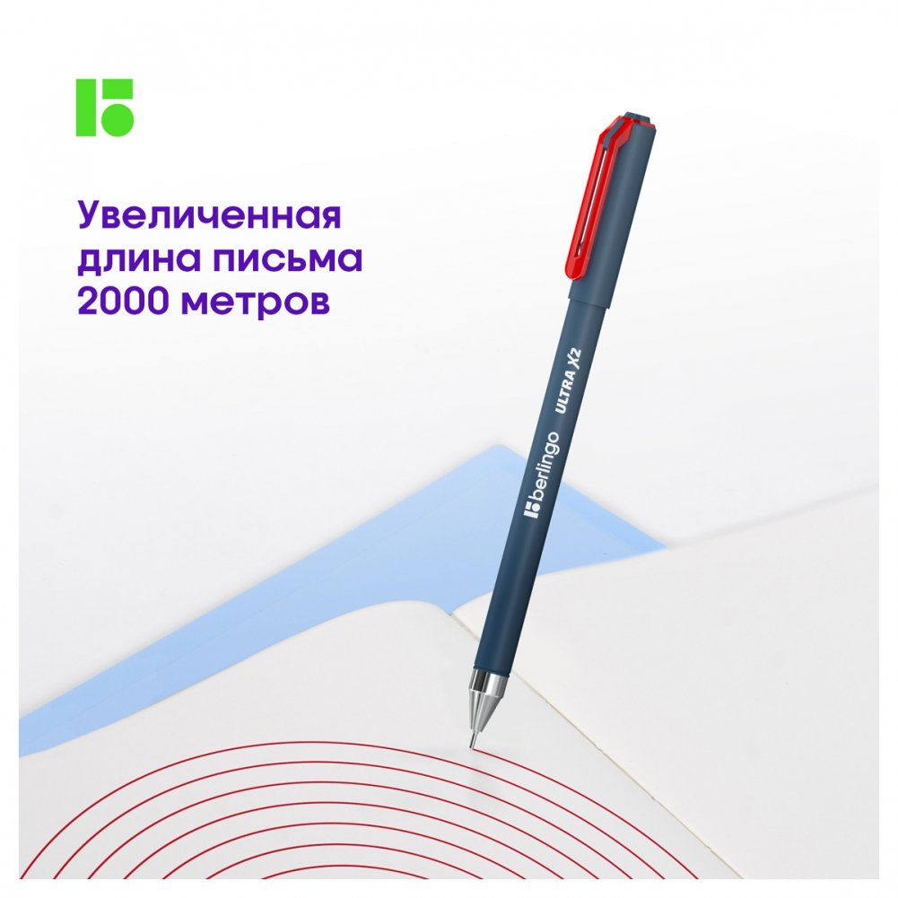 Ручка шариковая Berlingo "Ultra X2" красная, 0,7мм, игольчатый стержень