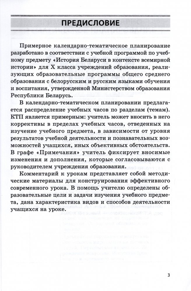 Примерное календарно-тематическое планирование разработано в соответствии с учебной программой по учебному предмету "История Беларуси в контексте всемирной истории" для Х класса учреждений образования, реализующих образовательные программы общего среднего образования с белорусским и русским языками обучения и воспитания, утвержденной Министерством образования Республики Беларусь.