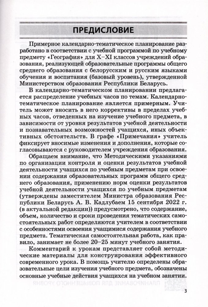 Примерное календарно-тематическое планирование разработано в соответствии с учебной программой по учебному предмету "География" для X-XI классов учреждений образования, реализующих образовательные программы общего среднего образования с белорусским и русским языками обучения и воспитания (базовый уровень), утвержденной Министерством образования Республики Беларусь.