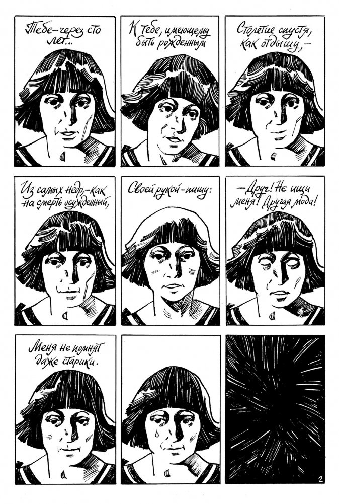 Марина Цветаева настаивала на том, чтобы ее называли поэтом, а не поэтессой. Марина Цветаева сравнивала себя с «пеной морскою», противопоставляя тем, «кто создан из камня, кто создан из глины». Её жизнь, жизнь великого поэта Серебряного века, напоминает греческую трагедию: потери, разлуки и невероятный триумф на фоне тектонического сдвига российской истории. Какой Цветаева была на самом деле? Нежным, ранимым и тонко чувствующим поэтом или неверной женой и равнодушной матерью, как про нее говорили злые языки? Кто расскажет о жизни поэта лучше, чем сам поэт? Именно поэтому повествование в нашем графическом романе ведется от лица самой Марины Цветаевой: «К тебе, имеющему быть рождённым столетие спустя, как отдышу, – из самых недр, – как на смерть осуждённый, своей рукой – пишу».