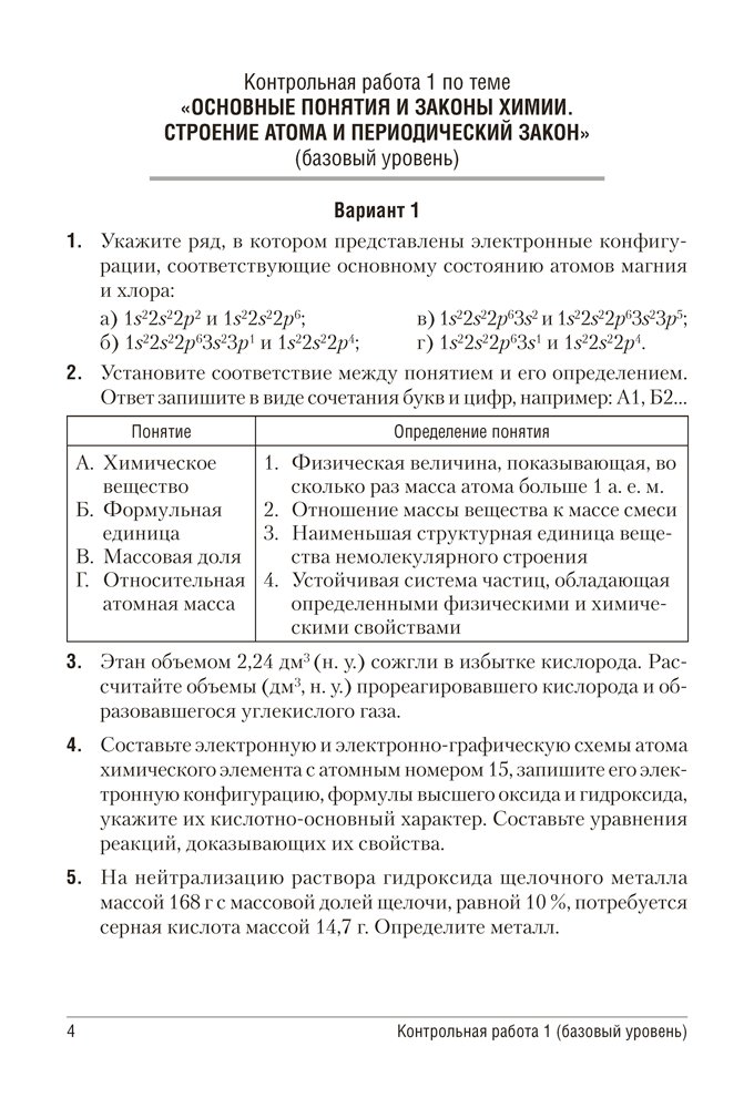 Сборник включает контрольные и самостоятельные работы по химии для 11 класса, представленные в четырех или двух (тесты) вариантах. Содержание работ соответствует учебным программам для базового и повышенного уровней.