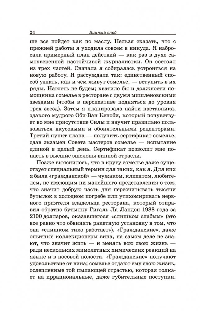 Однако только на первый взгляд профессия сомелье выглядит сплошным удовольствием. Для того чтобы достичь существенных высот в этой сфере, необходимо пройти немыслимые испытания. Один экзамен на мастера сомелье чего стоит! Подробнее обо всех этапах на пути к профессии вы можете прочитать в книге. Скажем только, что проще, дешевле и быстрее отучиться на юридическом факультете, чем получить место сомелье в одном из лучших ресторанов.