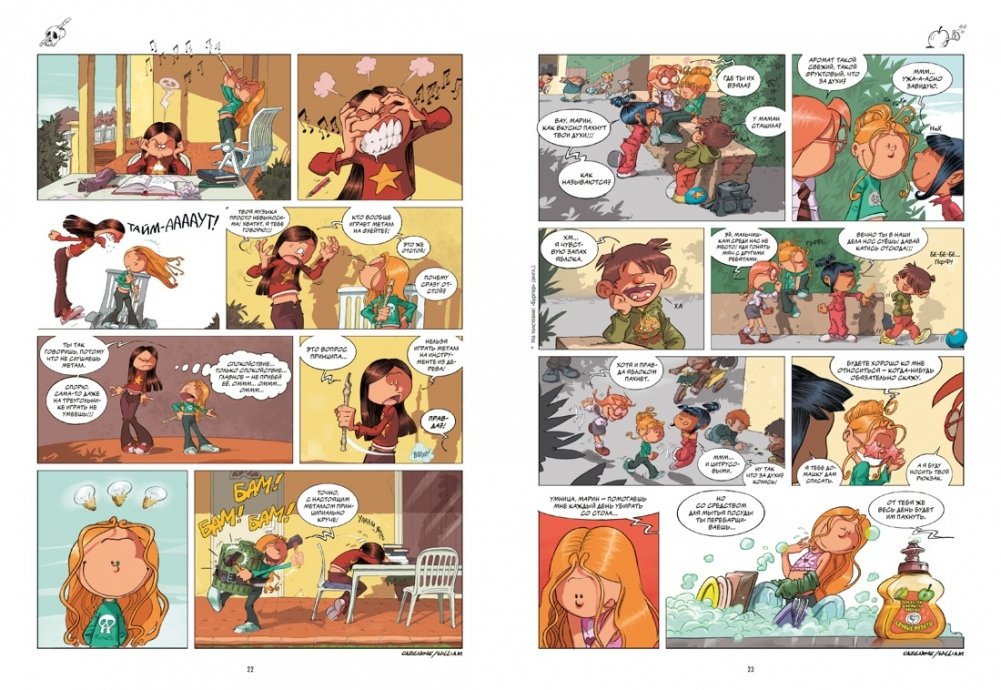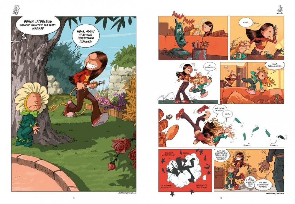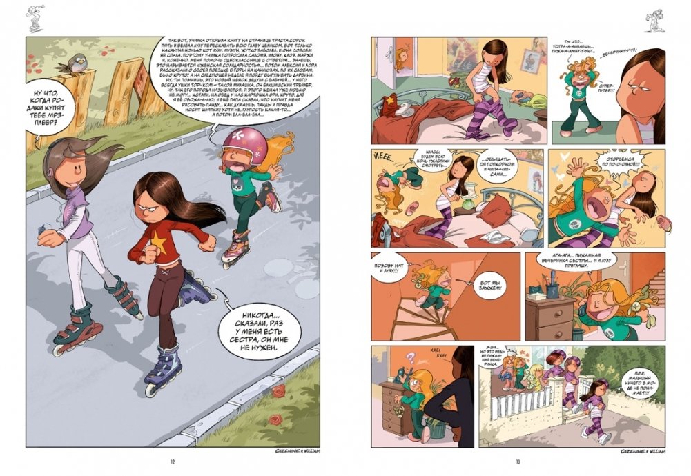 «Сёстры» - это смешной и трогательный комикс о том, как весело и непредсказуемо жить с сестрой, где каждый день – новое приключение, полное юмора и мелких шалостей. На каждой странице комикса вы найдете короткую зарисовку с остроумным финалом. История Венди и Марин переведена на 18 языков, а снятый по мотивам комикса мультсериал насчитывает уже 104 серии.
