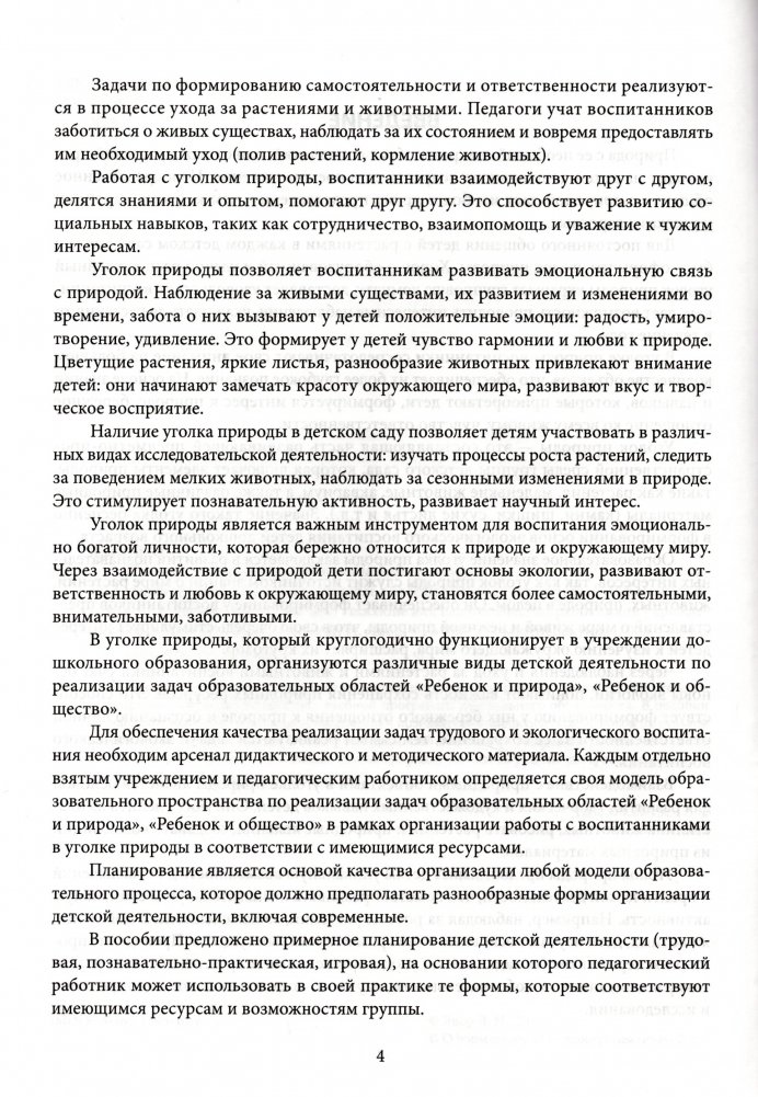 Содержание пособия направлено на реализацию задач образовательных областей "Ребенок и природа", "Ребенок и общество" учебной программы дошкольного образования. В пособии предложены разнообразные формы организации познавательно-практической, игровой и трудовой деятельности в рамках работы в уголке природы. Это поможет формировать умения, связанные с уходом за растениями и животными уголка природы, развивать у детей интерес к растениям и животным разных природных сообществ.