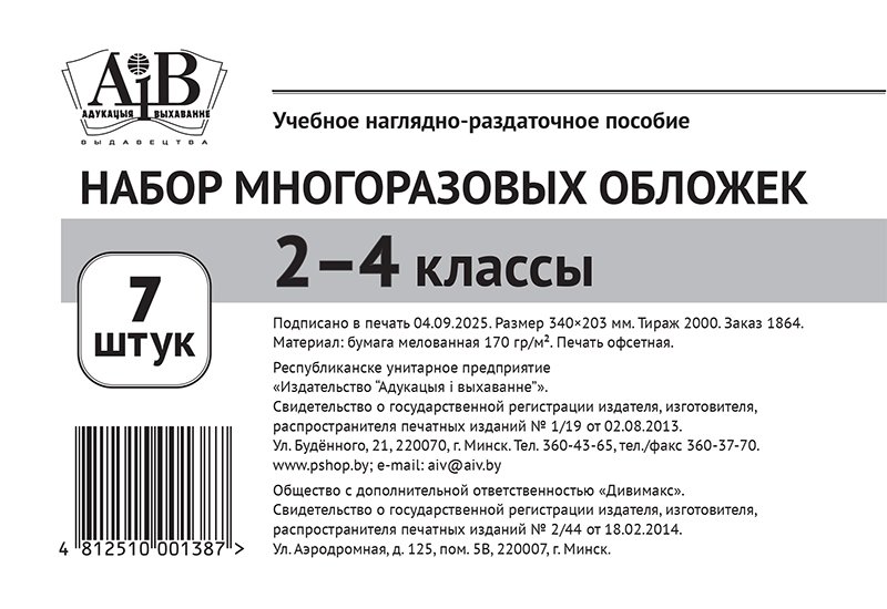 Набор многоразовых обложек для тетрадей по математике, русскому и белорусскому языкам предназначен для учащихся 2–4 классов и состоит из 7 обложек.
