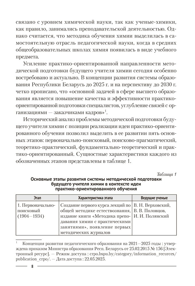 Учебное пособие отражает современные тенденции развития методики обучения химии, опирается на весь накопленный в отечественной педагогике и предметной методике научный и практический опыт и является первым пособием такого рода в Республике Беларусь. В книге рассмотрены общие теоретические вопросы методики обучения химии и приведено большое количество практико-ориентированных примеров. В ней обоснованы цели и задачи обучения химии в учреждениях общего среднего образования, раскрыты особенности содержания учебного предмета «Химия», подробно охарактеризованы методы, средства, современные технологии и организационные формы обучения химии.