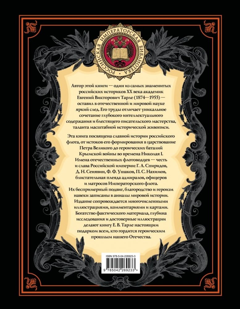 Автор этой книги — один из самых знаменитых российских историков XX века, академик Евгений Викторович Тарле (1874–1955) — оставил в отечественной и мировой науке яркий след. Российская историческая наука XX века не знает более звучного имени, чем имя Е. В. Тарле. Его труды отличает уникальное сочетание глубокого интеллектуального содержания и блестящего писательского мастерства, таланта масштабной исторической живописи. Присущее академику Тарле умение сочетать интереснейший фактический материал с научно-художественными обобщениями и увлекательно раскрыть подоплеку политических событий, захватив широкий исторический ландшафт, принесли историку небывалый успех у читающей публики. Это издание посвящено славной истории российского флота, от истоков его формирования в царствование Петра Великого до героических баталий Крымской войны во времена Николая I. Имена отечественных флотоводцев — честь и слава Российской империи: Г. А. Спиридов, Д. Н. Сенявин, Ф. Ф. Ушаков, П. С. Нахимов, блистательная плеяда адмиралов, офицеров и матросов Императорского флота. Их беспримерный подвиг, благородство и героизм навеки записаны в анналы мировой истории. Издание сопровождается многочисленными иллюстрациями, комментариями и картами. Богатство фактического материала, глубина исследования и достоверные иллюстрации делают книгу Е. В. Тарле настоящим подарком всем, кто гордится героическим прошлым нашего Отечества.